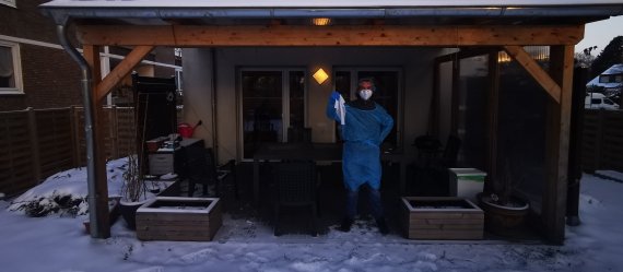 Um unsere Mieter*innen vor Corona zu schützen, führen wir regelmäßig Schnelltests durch. Das kann schonmal wild aussehen!