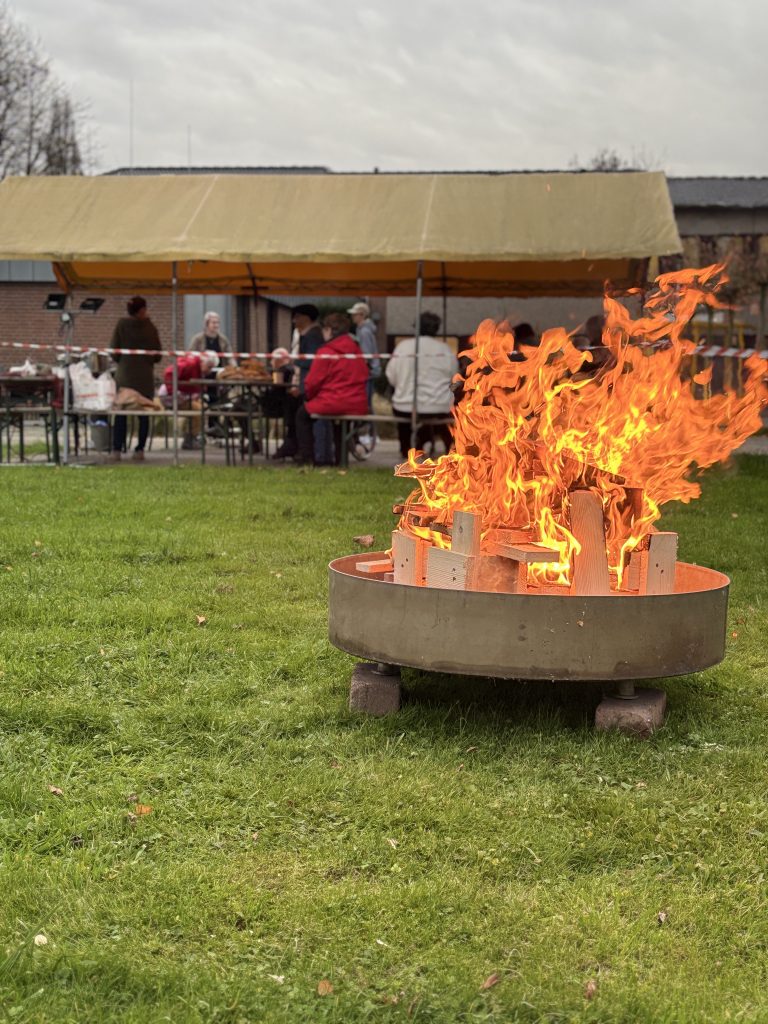 Das Martinsfeuer knistert und lädt die Mieter*innen zum gemütlichen Beisammensein ein